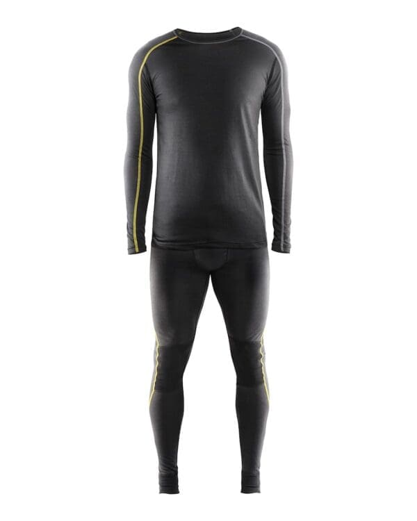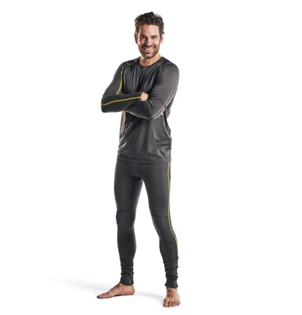 Undirtroyggja v/ langum ermum, merinoull, myrkagrá/gul
