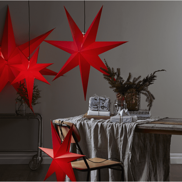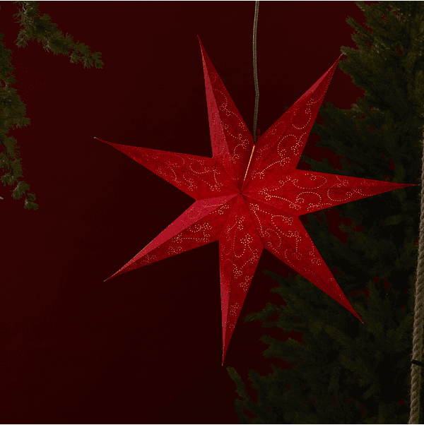 Decorus pappírstjørna 63cm reyð, mynstrut