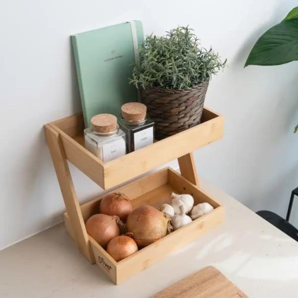 En skøn hjælper til skrivebordet, badeværelsesbordet eller makeupbordet – Adeline her kan hjælpe med pladsen mange forskellige steder! Hun er nemlig en organizer i bambus, som består af to opbevaringsbakker, som skaber to etager til opbevaring af alt fra skriveredskaber til smykker. Den øverste bakke giver en illusion af at svæve, så æstetik og funktionalitet mødes i den her skønne organizer.