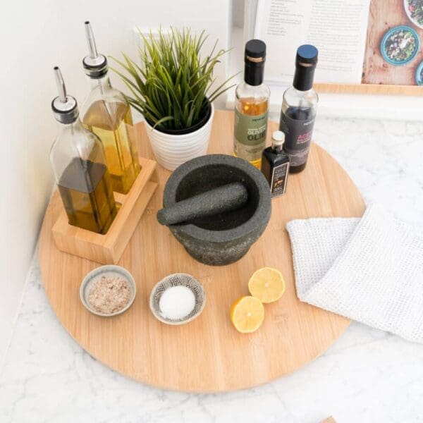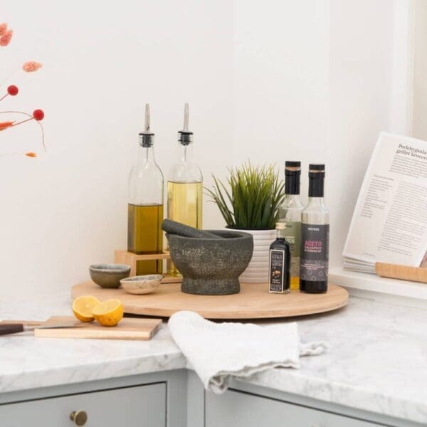 Vores Adeline drejefad er lavet af bambus og passer perfekt til ethvert køkkenbord. Placer dine olier, edikker, salt og peber på Adeline – giv hende så et spin og gør madlavningen lige en lille tand sjovere.