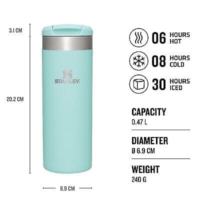 Produktet, der understøtter din pendling og livsstil på farten. Som en del af vores Transit-kollektion er Aerolight™ Transit-kruset designet til at være let uden at gå på kompromis med din ønskede væsketemperatur. Det holder dine drikkevarer varme i 6 timer eller kolde i 8 timer. Uanset om du er på en morgenpendling eller en aftentur, dækker dette produkt dig uanset vejret. Flasken er også lækagesikker med et låsbart låg. Det betyder, at du ikke behøver at bekymre dig om spild, når du smider din flaske i din taske og hopper på dit pendlertog eller begynder din træning. Derudover er AeroLight™ opvaskemaskine-sikker og BPA-fri, designet til nem rengøring. Vores pendlervenlige Transit-krus er 33 % lettere end Stanleys standard metaldriksæt i rustfrit stål.