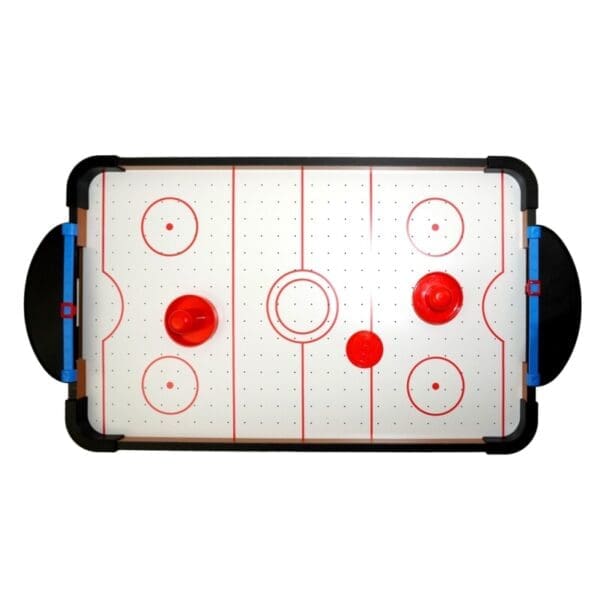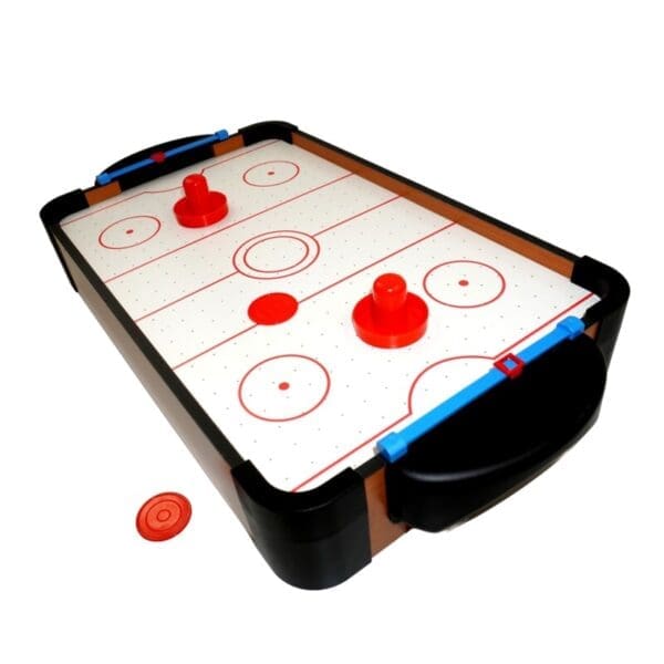 Airhockey er et konkurrencepræget spil i højt tempo! Men det er også lige til at gå til for alle inkl. børn, fordi der ikke er så mange forskellige regler at lære og forstå på forhånd. Er du god til at bedømme hastighed og retning på pucken, tænker hurtigt og forstår at narre din modstander, så du har du gode chancer for at udnytte dine muligheder optimalt og score mål. Spillet måler 51 x 31 x 10 cm og er nemt at tage med. Fra 6 år.