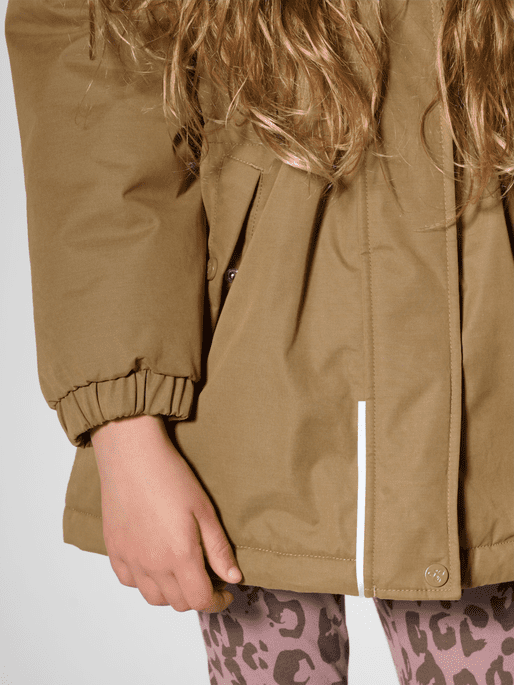 hmlATHENA TEX JACKET er en stilfuld vandtæt jakke i slidstærkt, vævet stof med varm og superblød fleece inden i hætten. Jakken er behandlet med fluorfri imprægneringsteknologi, så den kan modstå vandsøjletryk 5000 og giver åndbarhed 3000, og med hummelTEX BIONIC FINISH® ECO teknologi og tapede sømme giver den enestående beskyttelse mod elementerne. Den har også en justerbar snøre i kant og talje for at sikre en behagelig pasform. Et logo på brystet fuldender designet.