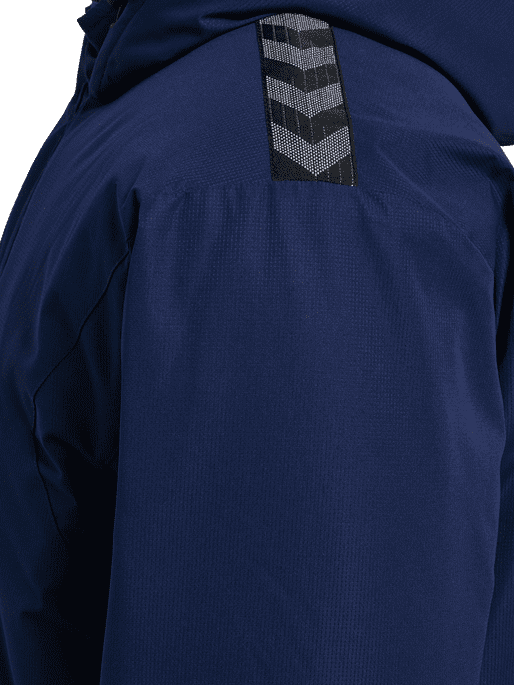 hmlAUTHENTIC BENCH JACKET er en alsidig vandafvisende jakke med vindstopper og tommelfingerhul i ærmekanten samt en hætte med snøre i voksenstørrelserne. Fremstillet af vævet stof med interlockstof til ærmekanterne og foring i åndbar mesh og taft. Der er lynlåslommer i siden og en inderlomme med lynlås. Denne hummel jakke har en skjult lynlås fortil med velcrostolpe. Funktion og stil forenes i denne jakke med vinkelbånd på skulderne og et printet logo på brystet.
