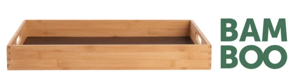 Lækker bakke i bæredygtig bambus med flot finish og dyb brun bund. 32 x 48 x 6 cm.