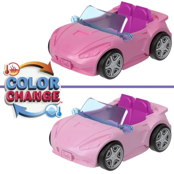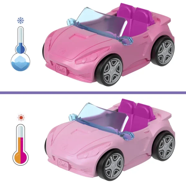 Oplev Barbie-dukkens verden med Mini BarbieLand – et sted, hvor fantasien er stor, og man kan drømme i ministørrelse. Disse flotte minikøretøjer er lavet med overraskelse i tankerne og er klar til leg eller udstilling. Denne genskabelse af den ikoniske Barbie-cabriolet i lille skala har en farveskiftfunktion samt et gadeskilt og en postkasse til historiefortælling. Sættet indeholder en Barbie-dukke, der er ca. 4 cm høj og er stylet på bedårende vis. Hun kan bøjes ved taljen, så hun kan sidde i førersædet og køre mod store eventyr i Mini BarbieLand. Fans fra 4 år vil elske at samle alle disse nuttede køretøjer og bygge deres egen miniverden. Sælges hver for sig, så længe lager haves. Farver og mønstre kan variere. Fra 4 år.