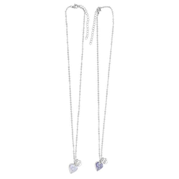 En til dig og en til mig! BFF-halskædesættet fra TOPModel indeholder to halskæder med matchende søde hjertevedhæng, så man kan give den ene halskæde til en, man gerne vil høre sammen med. Fås i to varianter: Det gyldne sæt har en kæde med et lyserødt hjertevedhæng og en kæde med et pink hjertevedhæng – begge med en blinkende smiley. Det sølvfarvede sæt har en kæde med et lyselilla hjertevedhæng og en kæde med et mørkelilla hjertevedhæng – begge med en blinkende smiley. Alle kæder har desuden et lille rundtstatement vedhæng med BFF-prægning. Kædens længde er justerbar 40-45 cm.