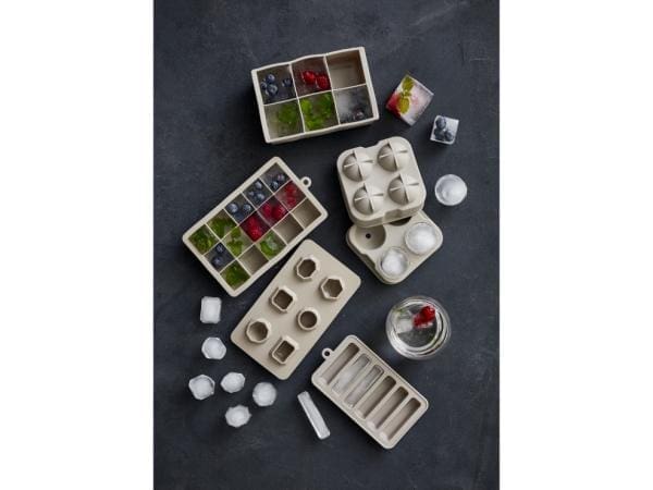 Isterningbakker i grå silikone til seks lange isterninger i hver. Den fleksible silikone gør det nemt at få isen ud af bakken uden at den knækker eller splinter. Du kan også lægge bær, blomster eller krydderurter i formene for at skabe sjove isterninger med indhold.