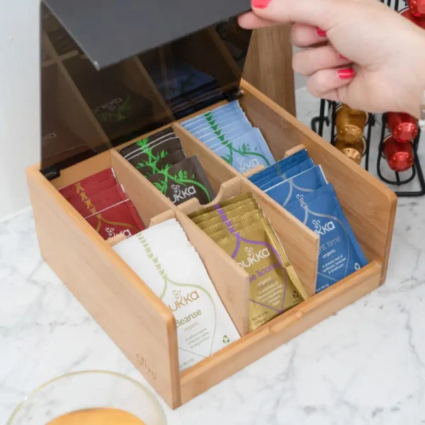 Ligger dine tebreve hulter til bulter i skuffer og skabe? Lad rod være fortid, og få overblik over dine tebreve med en teæske. Blake er en praktisk sag med seks store rum, der står klar til at skabe de bedste rammer for dine yndlingssmage. Og bare rolig. Teæsken fuldendes af et låg, som er med til at bevare teens gode smag. Sæt teæsken på køkkenbordet, spisebordet eller i køkkenskabet – så er den klar, når klokken slår tetid.