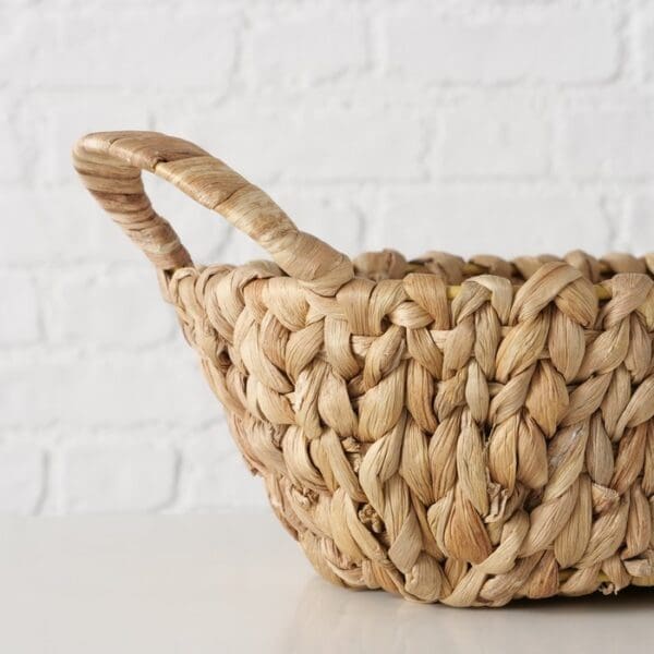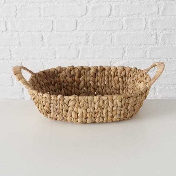 The Cado basket features a well-balanced blend of powder-coated iron and natural water hyacinth. Its round shape, 20 cm in diameter and 13 cm in height, highlights the aesthetic, handcrafted design with a matte finish. A sturdy handle ensures easy handling. High-quality workmanship makes this item a valuable addition to any Natural-style assortment.