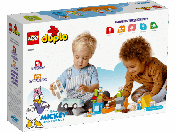 Fyld legetiden med timevis af glad læring med sættet LEGO® DUPLO® ǀ Disney Mickey og venner Campingeventyr (10997). Det sjove byggelegetøj er fyldt med kreative aktiviteter og hjælper små børn fra 2 år med at lære om robusthed og teamwork, når de tager med Disneys Andersine And og hendes nevøer på en actionfyldt campingtur.