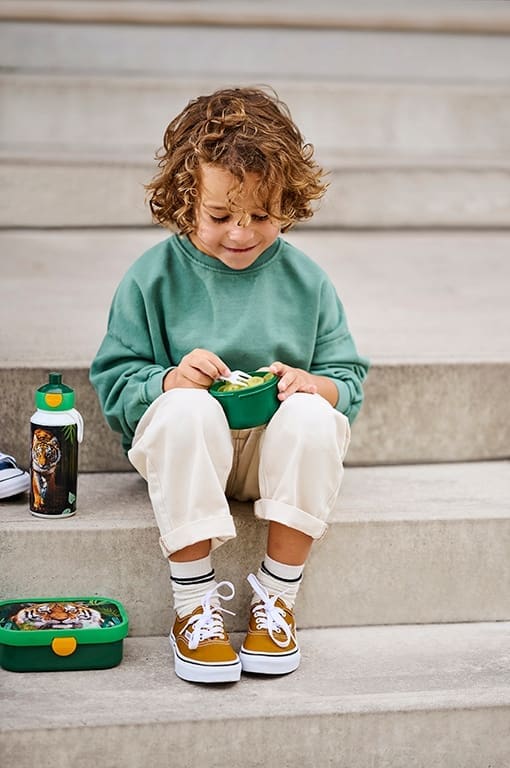 I frugtkassen med dit barns yndlingsprint bliver det en leg at tage grøntsager og frugt med sig. Lækagesikker og nem at åbne for børnenes hænder. Kassen kan placeres i mikrobølgeovnen uden låg. Den aftagelige gaffel sikrer, at børn kan nyde den uden rod. Med frugtkassen kan du fuldende dit barns madpakkesæt.