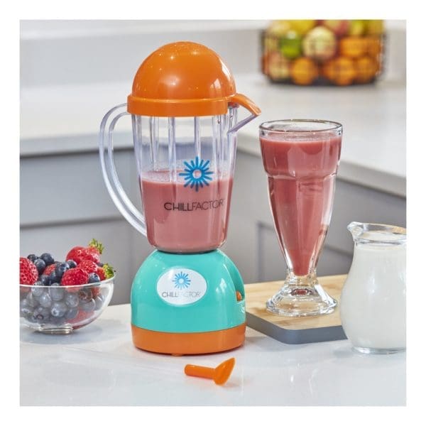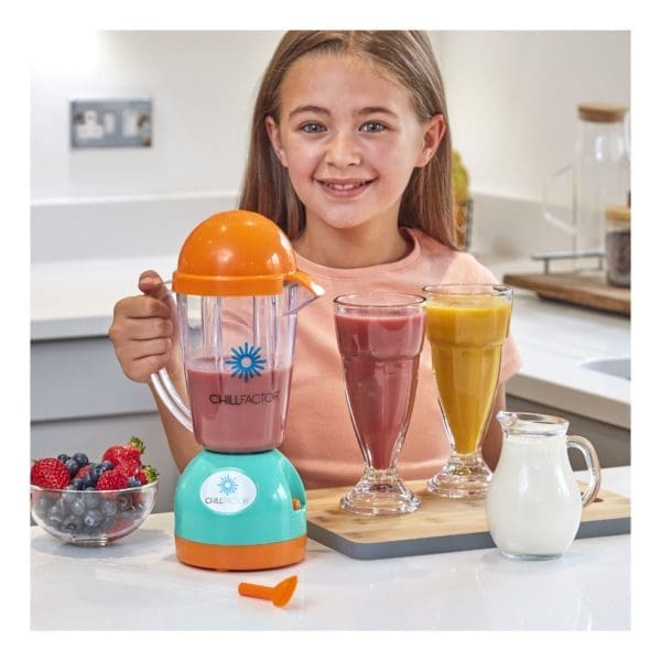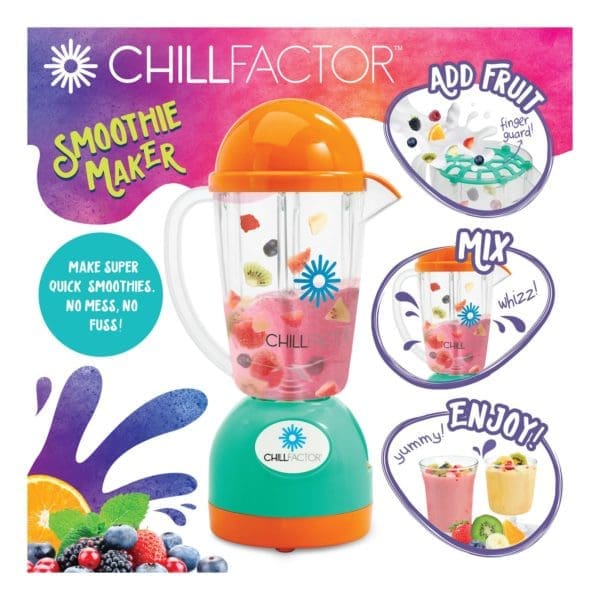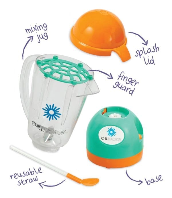 • ENKELT OG SIKKER – Alle ChillFactor-produkter er alle super enkle og sikre at bruge. Det er alt det sjove uden besværet! Følg instruktionerne for at rengøre og pleje din Smoothie Maker, og brug gang på gang til – med ChillFactor slutter det sjove aldrig! ChillFactor er designet med børn i tankerne og inkluderer sikkerhedsfunktioner såsom fingerbeskytter for at sikre, at de små forbliver sikre, mens de laver deres frugtige kreationer!