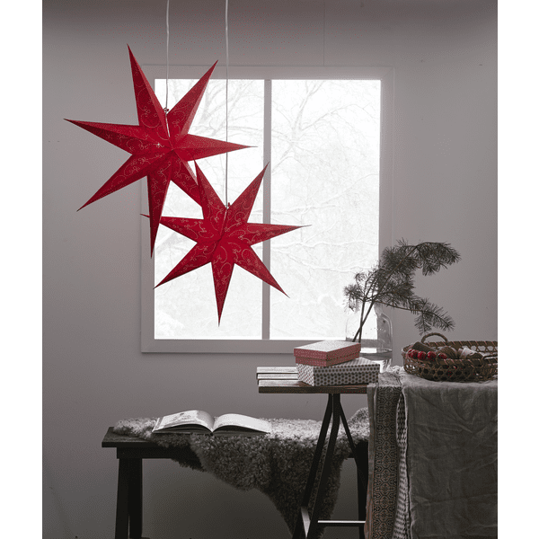 En smuk dekorativ papirstjerne til indendørs brug. Spreder dejlig glans og skaber en hyggelig atmosfære i hjemmet.