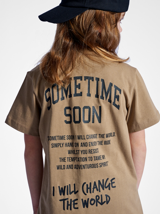 En essentiel klassiker til dit barns garderobe! stmDIMAS T-SHIRT S/S er fremstillet af økologisk STANDARD 100 by OEKO-TEX® bomuld, så du ved, at den er gennemtestet og fuldstændig fri for skadelig stoffer. Det kortærmede design har en klassisk rund hals med ribkant og “Sometime soon I will change the world” print på bryst og ryg.