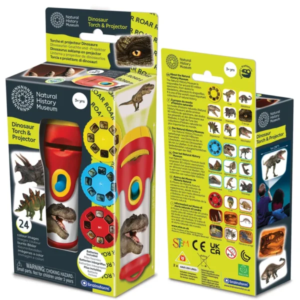 Denne seje projektor-lommelygte viser billeder af dinosaurer rundt omkring i dit værelse. Se fascinerende billeder af T-Rex, Stegosaurus, Triceratops og flere, projiceret op på dine vægge og lofter – en sjov måde at gøre sengetiden mere spændende.