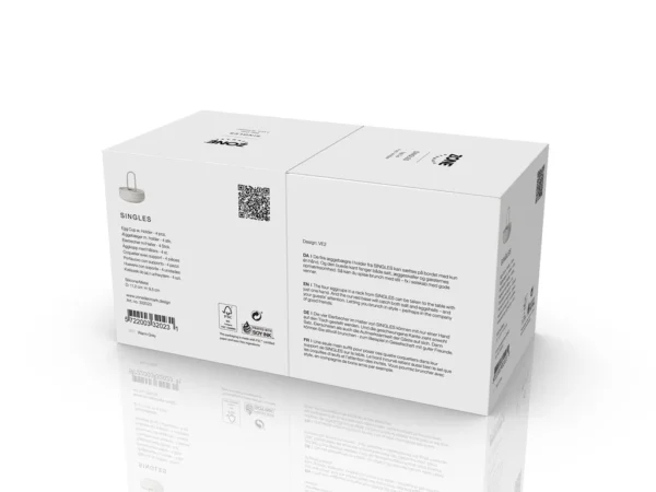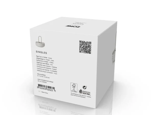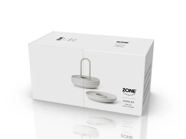 De fire æggebægre i holder fra Singles kan sættes på bordet med kun én hånd. Og den buede kant fanger både salt, æggeskaller og gæsternes opmærksomhed. Så kan du spise brunch med stil – fx i selskab med gode venner.