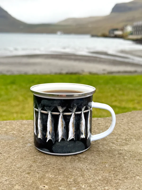 Emaljekrus med sølvkant. Perfekt til at nyde dine yndlingsdrinks derhjemme, på campingture eller under udendørs eventyr.