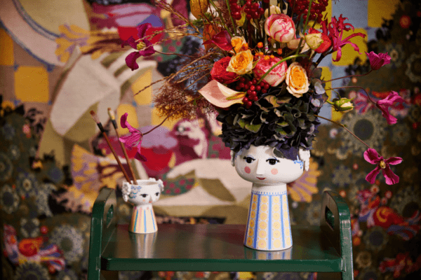 Bjørn Wiinblad repræsenterer alt, hvad der er skørt, skævt, kreativt og vidunderligt. Og med den smukke og smilende Eva-vase fra Bjørn Wiinblad med blåt hår og en farverig kjole i blå med rosa, lyseblå, gule og orange nuancer skaber du finurlighed i fuldt flor overalt i hjemmet. Vasen er 18,5 cm høj med en diameter på 12,5 cm og lavet af blankglaseret porcelæn. Ansigtet med de mandelformede øjne og den spidse næse er Wiinblads oprindelige streg, mens det farverige kjolemønster er en nyfortolkning af Bjørn Wiinblads illustrationer fra arkiverne. Formen er inspireret af Wiinblads originale og ikoniske Eva-vaser, der havde brede hoveder og kegleformede kroppe. Bjørn Wiinblad var en livsglad kunstner med en stor og farverig personlighed, der gik sine egne veje og ikke var bange for at drømme og tænke stort. Den sjæl mærkes også i Eva, der hviler i sig selv og inviterer os til at udtrykke vores egen stil og personlighed i indretningen med farverige blomsterbuketter, eksotiske planter, lys og kreative dekorationer. En ting er sikkert: Det bliver ikke kedeligt, når Eva flytter ind.
