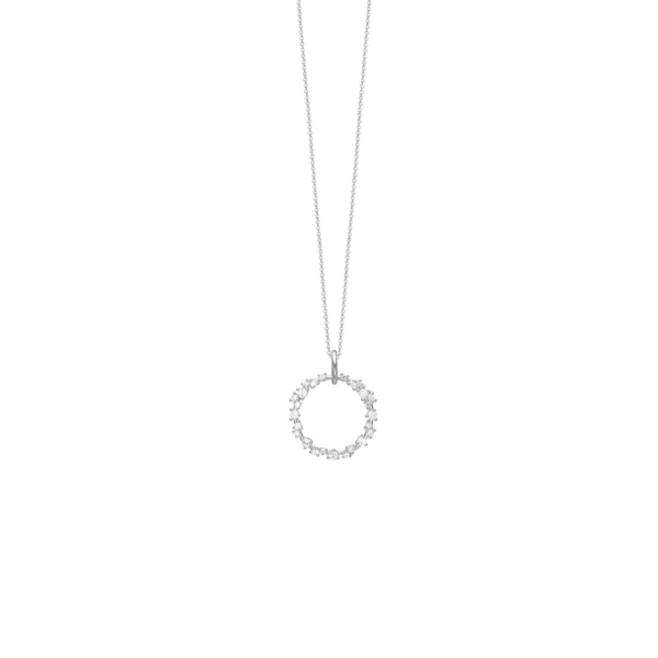 Oplev tidløs elegance med vores cirkelformede sølvvedhæng, smukt indgraveret med strålende cubic zirconia sten hele vejen rundt. Dette unikke smykke fra Aagaard forener skønhed og klasse, og er det perfekte valg til enhver lejlighed. Det sølvbelagte design giver en subtil glans, der fanger lyset på en fortryllende måde. Vores vedhæng er omhyggeligt fremstillet med materialer af højeste kvalitet for at sikre langvarig glans og holdbarhed. Med dets enestående design og uovertrufne kvalitet vil dette vedhæng med cubic zirconia sten blive et værdsat smykke i din samling. Køb det i dag og tilføj et strejf af luksus til din stil. Med 45 cm sølv kæde.