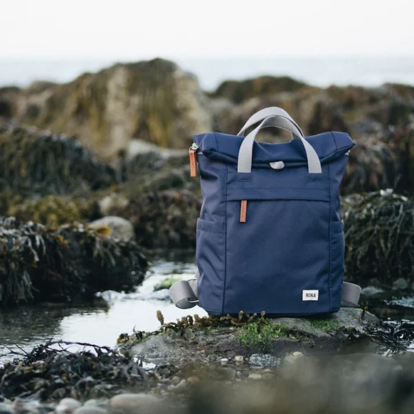 Denne vejrbestandige taske har ekstra opbevaringsplads, et polstret rum til bærbar computer eller tablet og masser af lommer. Vores kanvasmateriale er lavet af genbrugslærred af plastaffald og belagt for at gøre det vandafvisende. Det er vejrbestandigt, let og lige så holdbart som alle vores ROKA London-tasker.