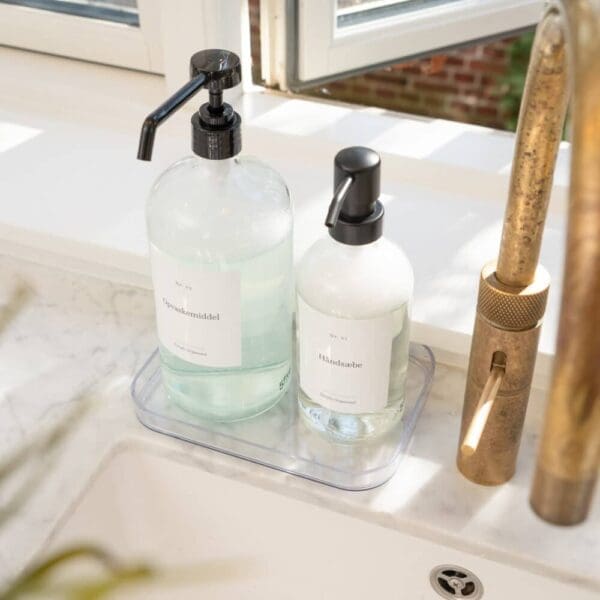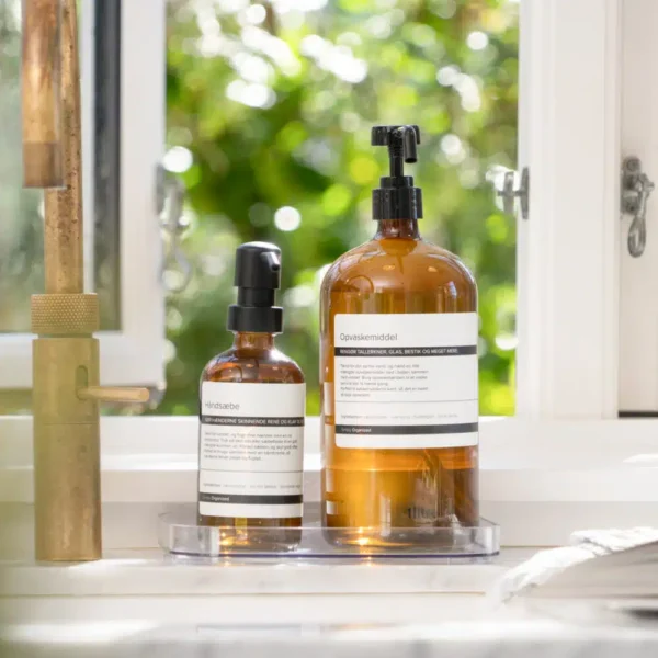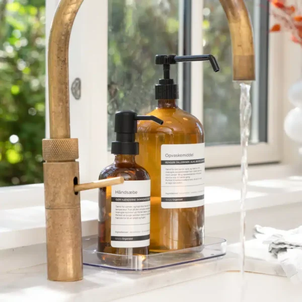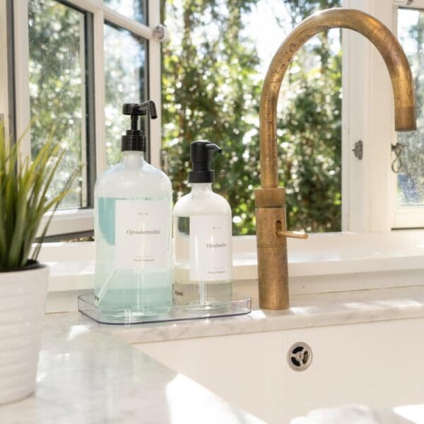 Håndvask er ikke lige det mest spændende emne, det ved vi godt – men du kan virkelig gøre noget ved oplevelsen, hvis du skifter din kedelige plastikdispenser ud med vores gode veninde Freja! Hun er en skøn sæbedispenser i glas med en dispenser i plast, og du kan fylde hende med din yndlingssæbe, -shampoo og -showergel og gøre dit badeværelse lige dét mere organiseret!
