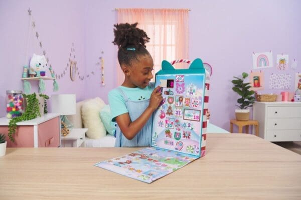 Tæl ned til højtiden med Gabbys Dukkehus Julekalender 2023. Med denne festlige kalender kan børn hver dag afsløre en ny festlig gave fra Gabbys Dukkehus. Der er 24 gaver at afsløre og der venter altid en ny overraskelse bag hver låge. Børn vil finde en Gabby-figur sammen med Æskebarn, Muffins, Pandy Pote, 2 figurer i specialudgaver og en eksklusiv figur med perlemorsfinish. Børn vil også afsløre 9 sjove tilbehørsdele, såsom et par slæder, en rampe, klistermærker og meget mere. Når alle 24 gaver er åbnet, kan børn bruge deres fantasi til at skabe et sne-eventyr med Gabby, hendes killinger og deres venner. Vær med til at fejre julen med Gabbys Dukkehus Julekalender 2023. Vil du have endnu flere måder at lege på, kan du kigge efter Gabbys Dukkehus Kat-tastisk Cruise, Gabbys Kat-tastiske Dukkehus og dukkehusrummene med tema for at udbygge din dukkehusverden endnu mere ( sælges separat). Gabbys Dukkehus plyslegetøj, figurer og legesæt er det perfekte legetøj til børn, der elsker at bruge deres fantasi til at skabe deres egen dukkehusverden, så forberedt dig på endeløse legeeventyr med Gabbys Dukkehus Julekalender 2023. Fra 3 år.