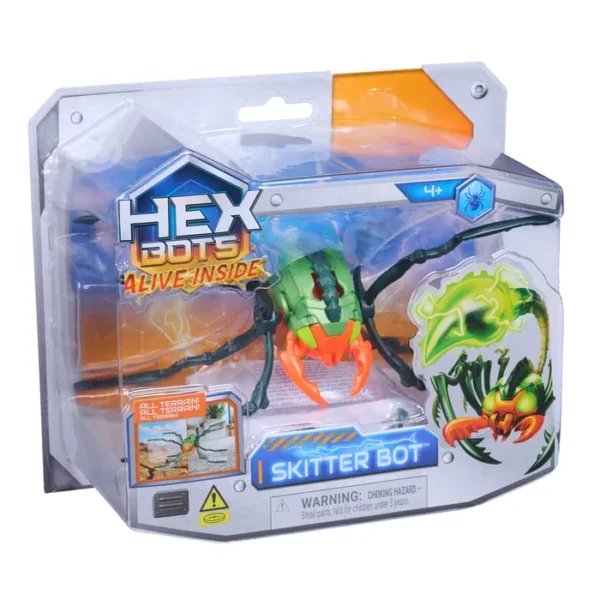 Bring kaos ind i hjemmet med HEX BOTS Skitter Bot! Dette robot-insektlegetøj vil få enhver med insektfobi til at skrige! Se hvordan Skitter Bot kravler lynhurtigt hen over gulvet med sin unikke, selvkørende bevægelse! Skitter Bot kan klare enhver overflade – også udenfor! Den kommer til live med blinkende øjne, uhyggeligt design og robotteknologi, som gør legen super sjov! Batterier medfølger, så legen kan begynde med det samme – og fortsætte i timevis! Disse kravlende robotter er must-haves til enhver samling af sejt legetøj til børn fra 4-6 år. Byg din samling af actionfigurer, byggesæt, STEM-legetøj, RC-biler og kampspil med HEX BOTS robotter! Fra 4 år. Batterier (3xLR44). inkl