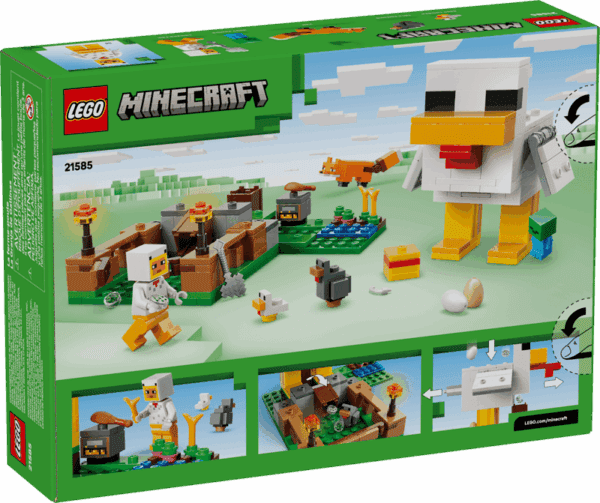 - KARAKTERER FRA MINECRAFT®-FARM – LEGO® Minecraft sættet Hønsefarm (21585) indeholder en minifigur af en hønsefan samt en zombieunge (der kan lide at ride på kyllingen), en ræv, en kold høne og en kylling