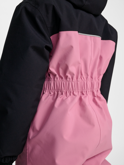 hmlJR BLOCK SNOWSUIT WP giver vandtæt beskyttelse med 8000MM vandsøjletryk og 5000GR/M2/24H åndbarhed. Dragten holder dit barn varmt og tørt med fuldt tapede sømme og sidelommer med ferature, en aftagelig hætte og en lynlåsgarage, der giver komfort.