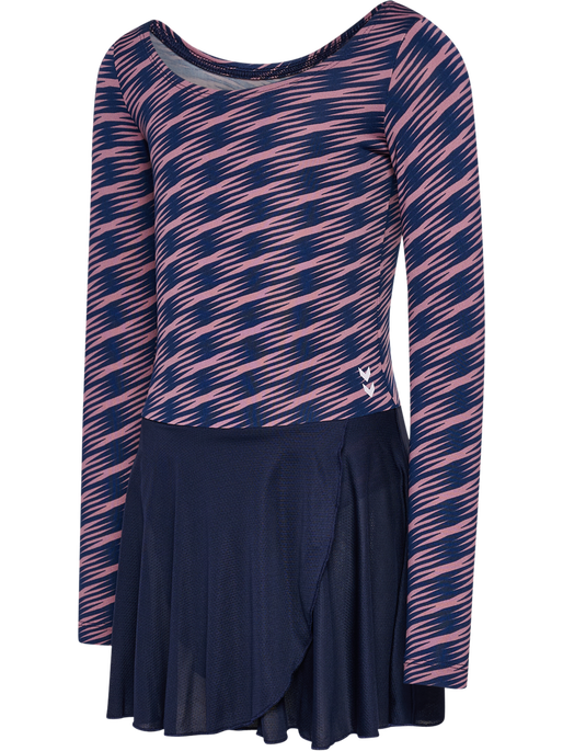 HMLJR MIX GYMSUIT L/S er lavet af blødt jersey-stof med et all-over print og vandbaseret tryk, der giver en flot finish. Dragten er fremstillet af genanvendt polyester og elastan, hvilket gør den både strækbar og behagelig at have på. Perfekt til gymnastik og andre aktive lege