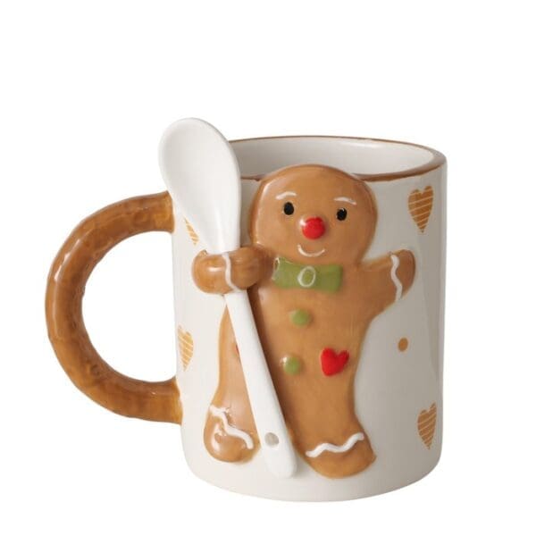 Ginger jumbo-kruset er lavet af stentøj og kendetegnes af håndlavede detaljer. Med en kapacitet på 520 ml, en diameter på 9,2 cm og en højde på 12 cm tilbyder det praktiske dimensioner. Den runde form har et flerfarvet design med blank effekt, glaseret overflade, relieffinish og et honningkagemandsmotiv som et sæsonbestemt accessoire til jul.