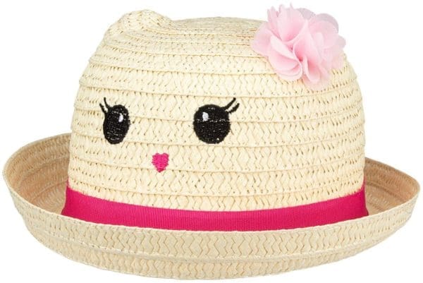 Denne Waimea Straw Hat Fiesta til børn er lavet af letvægts papirstrå og er meget velegnet til sommeren. Kanten på Waimea stråhatten Fiesta holder øjnene i skyggen, mens materialet holder hovedet køligt. Denne solhat har også en munter form med ører, øjne og smukke farver. Blomsten fuldender denne søde pigehat!