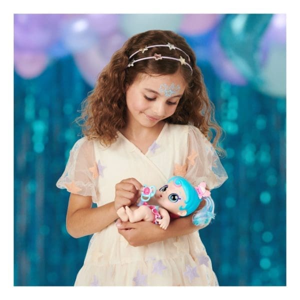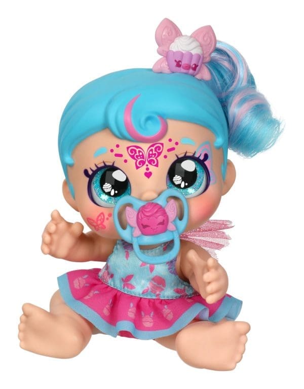 • Patticake Fairy Dress Up Magic Baby Sister wears an adorable cupcake fairy dress and has a matching pacifier that can detach from their mouth. Her clothing and diaper can be easily removed for extra fun play!