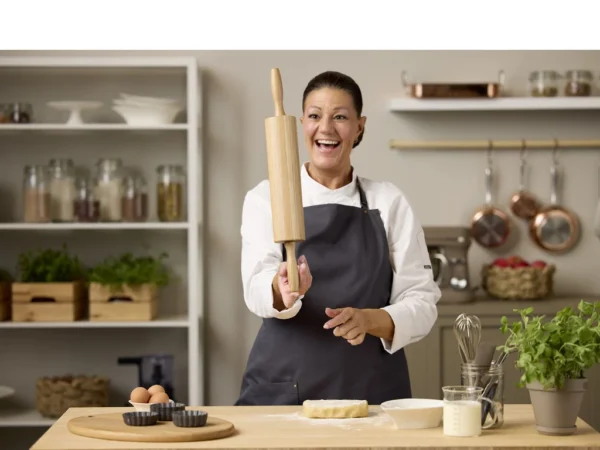 Kagerullen er udstyret med smarte kuglelejer, som sørger for, at den ruller let og lydløst. Brug den til det meste – fra småkager og tærter til pizza, knækbrød, marcipan og fondant. Trædelen på varen er FSC®-certificeret egetræ (FSC-C166612). Håndopvask anbefales.