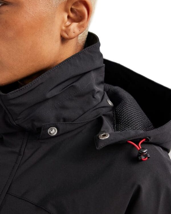 83% polyamid, 17% spandex, lamineret, vandtæt 15.000 mm, vindtæt, åndbarhed RET 11,3, stretch, 170 g/m²