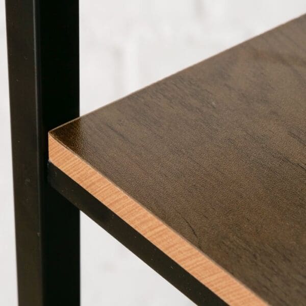 The Lagos add-on shelf features handcrafted MDF and powder-coated iron. Its rectangular design in black and brown offers a matte, multicolored finish. With a height of 140 cm, width of 24 cm, and depth of 23.5 cm, this freestanding unit enables flexible assortment extensions and stands out for its quality materials and craftsmanship.