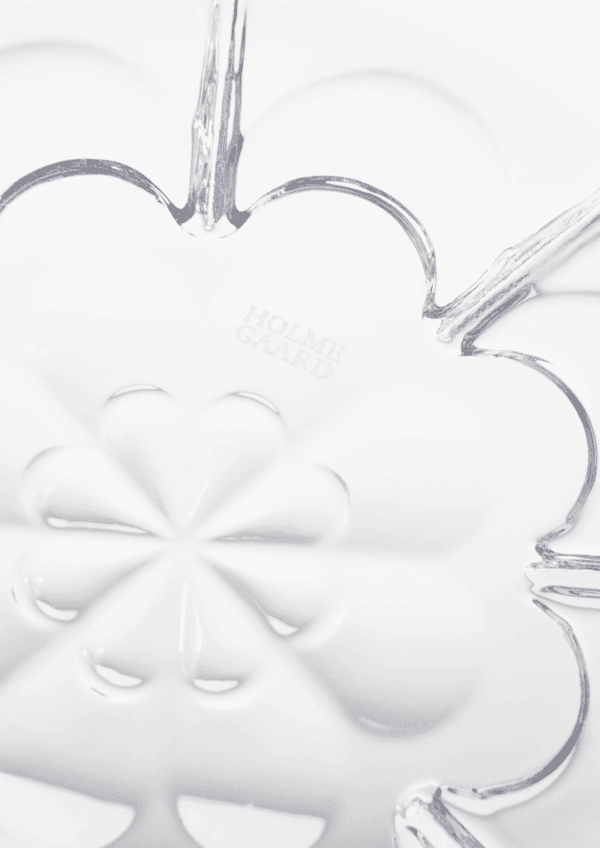 Holmegaards serie Lily er inspireret af de forskellige stadier i åkandens blomstring og har det samme lette og poetiske udtryk som den smukke blomst. Skålen i klart glas har en diameter på 23 cm og er perfekt til en gammeldags æblekage med ristede havregryn, flødeskum, æblemos og ribsgele på toppen. Eller til frugtsalaten, den grønne salat eller som frugtskål. Blomstermønsteret træder frem som relief i det formpressede glas, der både er transparent og taktilt. Linjerne i designet er enkle, bløde og organiske, men stadig på en simplificeret og stilistisk måde, så der opstår en fin balance mellem det romantiske og moderne. Skålen kan gå i opvaskemaskinen, så du kan bruge den til daglig uden at skulle bekymre dig om at vaske den op i hånden. I serien findes også en mindre skål, en isasiet og vandglas – alt sammen i fire forskellige farver. Alle delene i Lily-serien er skabt i gennemfarvet glas, så farven holder sig flot over tid.
