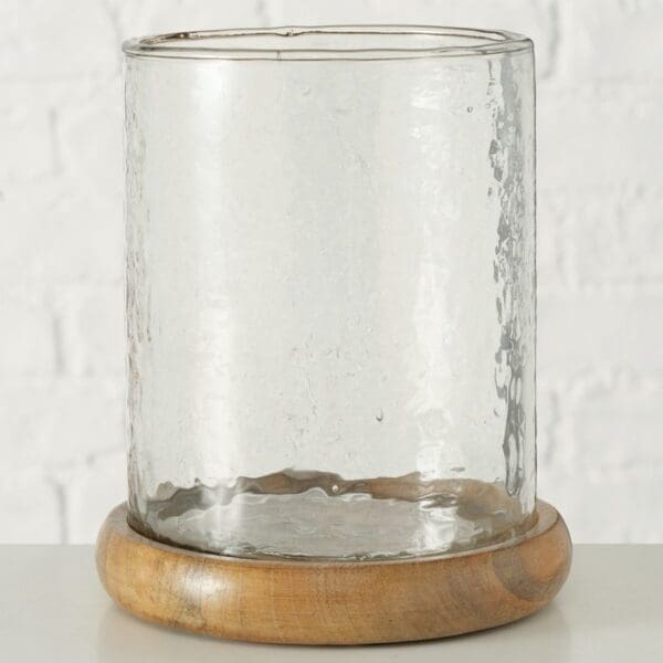 Theodora is a hand-crafted candle holder made from mango wood combined with lacquered glass, featuring a round shape and natural colour. Measuring 16 cm in height and 15 cm in diameter, it is designed as a freestanding decorative piece. The high-quality workmanship highlights the country style and makes it suitable for extending assortments in living and dining areas.