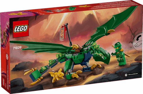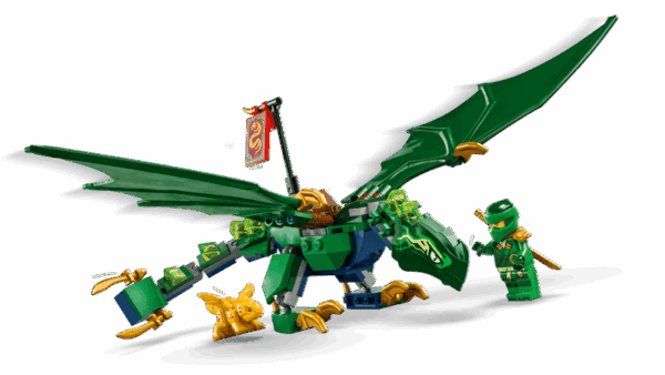 - Bevægelig NINJAGO®-drage – En byggemodel af Lloyds grønne skovdrage med bevægelig hale, hals, ben, hænder og store vinger samt en sadel, så en minifigur kan ride på dens ryg