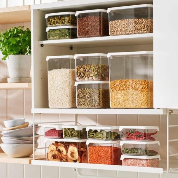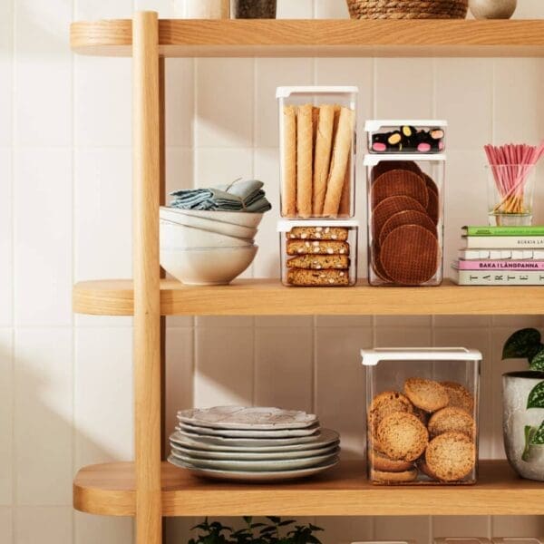 Selvom nogle tænker på tørvarer som noget støvet kedeligt noget, så kan det virkelig få os i godt humør – især hvis det er organiseret i de her skønne Luna-bøtter til tørvarer! Leder du i stedet efter en god løsning til køleskabet, skal du tjekke vores Luna-serie til madpakker, rester og meal-prep ud. De flotte labels vi har brugt her er vores Rosa – Tørvarerlabels.
