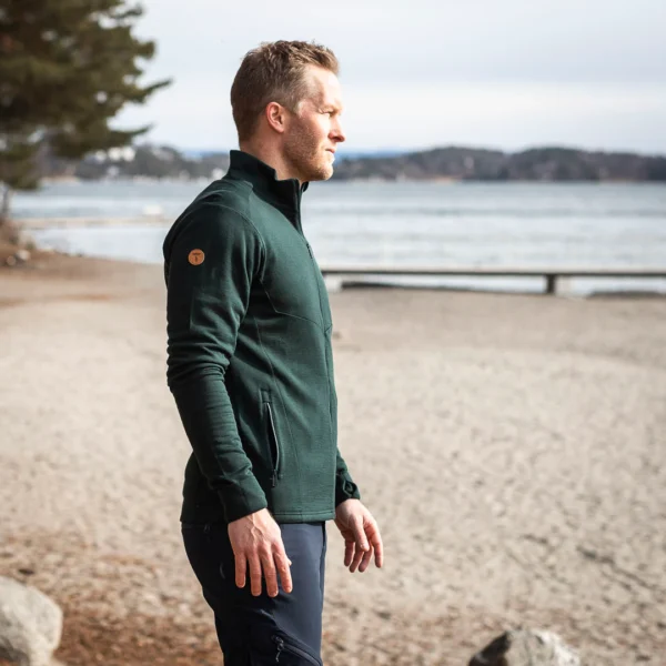 Her har du et miljøvenligt alternativ til polyesterfleece. En praktisk uldjakke med høj hals, der giver dig komfort og varme, uanset hvilken slags aktiviteter du laver. I modsætning til mange andre fleeceprodukter er denne jakke lavet af 100% merinould og ikke mikroplast, hvilket gør tøjet helt miljøvenligt. Nul emission af mikroplast under brug og vask. Jakken har to frontlommer med lynlåse, til alle de småting du vil have med på rejsen. Et fremragende mellemlag til kolde vinterdage, bare tag en vindtæt jakke på, og du er godt i gang!