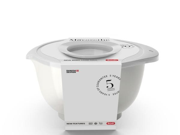 Margrethe-skålen er den klassiske røreskål med det sikre greb, den praktiske hældekant og den skridsikre bundring. Den nye version af Margrethe-skålen er lavet af Durostima® plastmateriale. Skålen er nu endnu stærkere og mere brudsikker, og takket være det nye materiale er den nu også mikrobølgeovns- og frysesikker. Margrethe-skålen er ideel til både tilberedning og servering, og køb af et låg forvandler røreskålen til en praktisk opbevaringsskål. 5 års garanti.