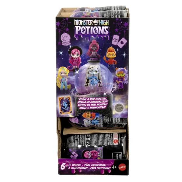 Monster High Potions er tilbage med sit krystalkugle-inspirerede design! Hver krystalkugle skjuler en 7 cm høj figur af en fanfavorit fra Monster High. Hvilken monster-ven afsløres? Det er alt sammen en del af den frygtelige overraskelse i ministørrelse! Med følger også en charm til personlig pynt og et tarotkort med et uhyggeligt stjernetegn. Bryg i fire trin: fyld med vand, ryst, afslør charmen, og drej derefter for at se trylledrikken “magisk” forsvinde og afsløre én af seks mulige overraskelsesdukker! Fra 4 år.