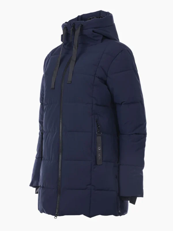 Jakken har en praktisk længde, der dækker hofter og balder for ekstra varme, og de quiltede kanaler holder isoleringen jævnt fordelt, samtidig med at den giver et moderne og tidløst look.