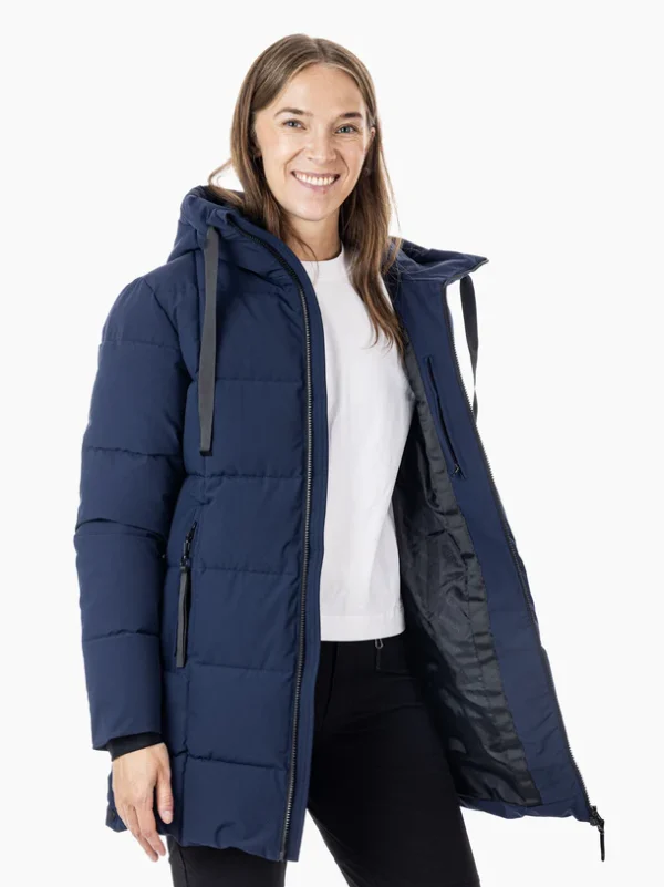 Namsos vinterjakken til kvinder fra MoveOn kombinerer varme, komfort og funktion. Den er både vindtæt og har en vandsøjle på 10.000 mm – perfekt til norske forhold.