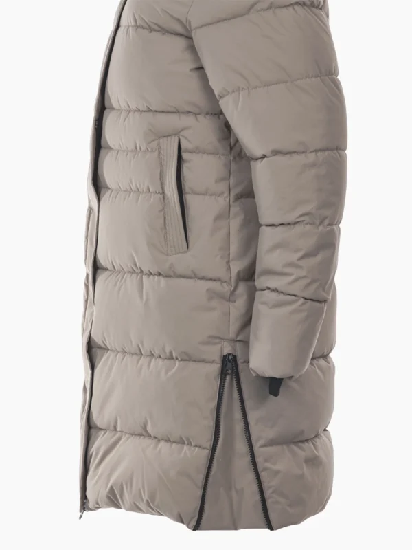 Denne quiltede vinterjakke har en vandsøjle på 8000 mm og en åndbarhed på 5000, hvilket giver fremragende beskyttelse og komfort. Den lange længde giver ekstra varme og isolering på kolde dage. Jakken har lynlåse i bunden af hver side for udvidelse, samt en tovejslynlås foran for fleksibilitet. Den leveres med en inderlomme og to yderlommer til praktisk opbevaring. Elastiske ærmekanter med tommelfingerhuller giver ekstra varme til hænderne og forhindrer kulden i at trænge ind mellem ærmer og handsker.