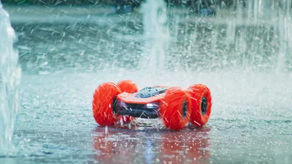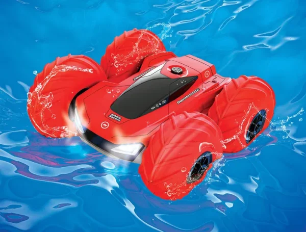 Med Aquabound 2 kan intet stoppe dig – kør på land, vand og sne. Aquabound 2 er vendbar og ustoppelig, trodser tyngdekraften og overvinder enhver forhindring. Den kan lave 360° vendinger og har 4-hjulstræk! Takket være den medfølgende pumpe kan du tilpasse hjulenes oppustning efter terrænet – det er vigtigt ikke at overskride de markerede linjer på chassiset. Det er en ny og forbedret version af Nincos Aquabound, nu også med for- og baglygter. Fra 6 år. Batterier (1xLithium Recargeable). inkl + Batterier (2xAA). ekskl.