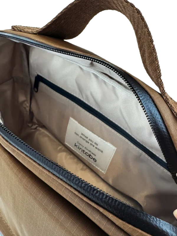 - 100 % genanvendt polypropylen:Foring, indvendig etiket, logoetiket, tråd, plejemærke, lynlåsbånd, non-woven forstærkning