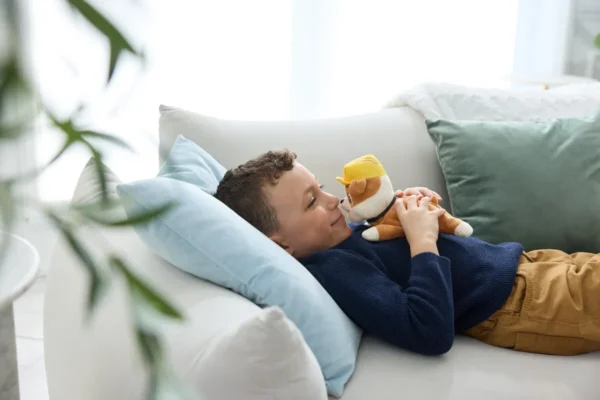 Rubble klar til tjeneste! Rubble er klar til eventyr – eller en afslappende lur – som en nuttet loungende plysfigur. Denne bløde, elskelige bamse forestiller den sjove og søde bygge-hvalp fra PAW Patrol i sin gule hjelm og badge, fastgjort med en mørkegrå satinbånd-krave. Rubble har blød brun plys med lyse detaljer, næse af plast og en dejlig krammevenlig krop fyldt med vægtede pellets for en spændende sanseoplevelse. Den praktiske størrelse på 20 cm gør det nemt at tage ham med overalt, så børn kan redde dagen med deres yndlingsfigur (eller hele holdet) under næste redningsmission. Saml dem alle – Chase, Skye, Marshall og Rubble – i beanbag-stil. Alle GUND PAW Patrol plysdyr kan overfladevaskes til nem og praktisk rengøring og leveres i en beskyttende polybag. Hver bamse egner sig til børn fra 1 år og op. PAW Patrol, den populære animerede serie fra Nickelodeon, følger seks heltemodige hvalpe ledet af den teknisk dygtige dreng Ryder på 10 år. Sammen tager de spændende redningsmissioner i Adventure Bay og lærer børn vigtige ting om problemløsning og samarbejde. Udforsk hele vores officielle licenserede GUND-sortiment og fuldend din egen PAWsome-samling. Fra 12 mdr.